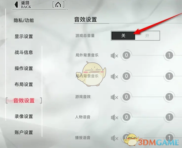 4、若玩家不想设置音效,直接关闭游戏总音量即可。