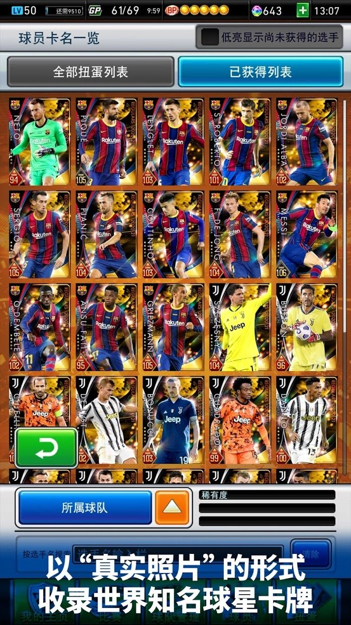 此外,游戏内会定期开展“冠军赛”活动,为玩家提供与全球同好一较高下的契机,既能让你适时审视自身实力水平,又能体验与人竞技的持久乐趣。PESCC收录了阿根廷国家队、法国国家队、比利时国家队等世界劲旅,以及FC BARCELONA、JUVENTUS FC、MANCHESTER UNITED、FC BAYERN MÜNCHEN等知名俱乐部的球星卡牌,所有卡牌均以真实照片呈现。赶紧加入PESCC,和全球玩家一起畅享这个精彩时刻,夺取属于你的世界冠军吧!