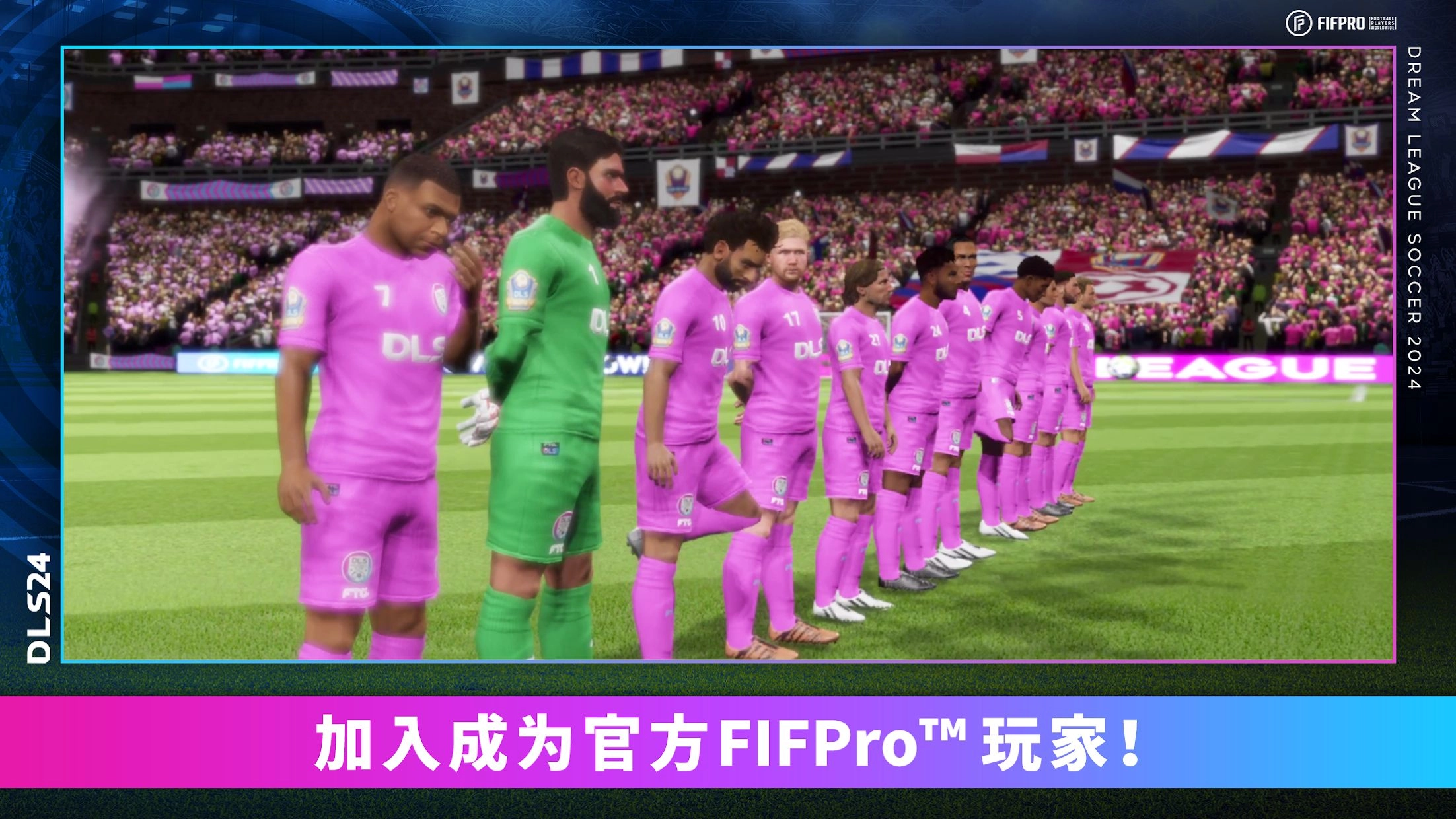 《梦幻足球联盟2024》(Dream League Soccer 2024)能引领你踏入全新的足球游戏天地。凭借崭新的界面设计与充实的玩法内容,这款游戏能让你完全沉浸于足球运动的魅力里,亲身感受与全球顶尖足球俱乐部同台竞技的刺激。在游戏里,你可以从四千多名FIFPRO™认证球员中挑选成员,组建专属于你的梦幻球队,塑造独特的战术风格,悉心培养球员成长,还能在晋级之路上挑战所有挡路的对手球队。游戏采用的3D动作捕捉技术,让球员的每一个动作都呈现出逼真的视觉效果,而沉浸式的游戏内解说,更能让你仿佛置身于真实的赛场之中。