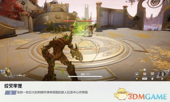 投掷一枚庞大的荆棘炸弹,把四周的敌人拽到中心位置并加以禁锢。