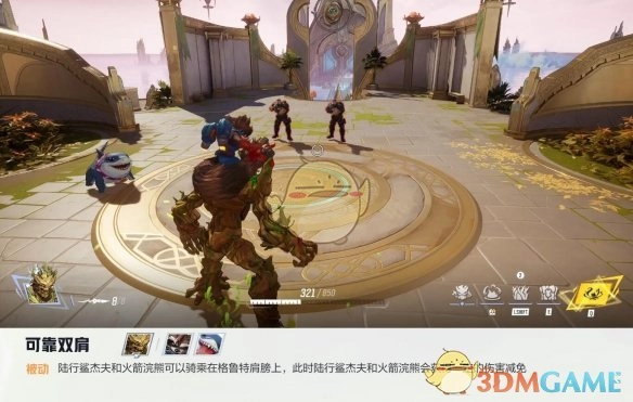 坚实双肩:陆行鲨杰夫与火箭浣熊能够骑在格鲁特的肩膀上,同时格鲁特为他们提供一定程度的伤害减免。
