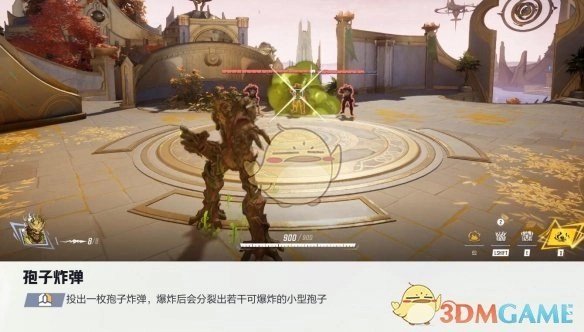 投出孢子炸弹,炸弹爆炸后会分裂出一些能够爆炸的小型孢子。