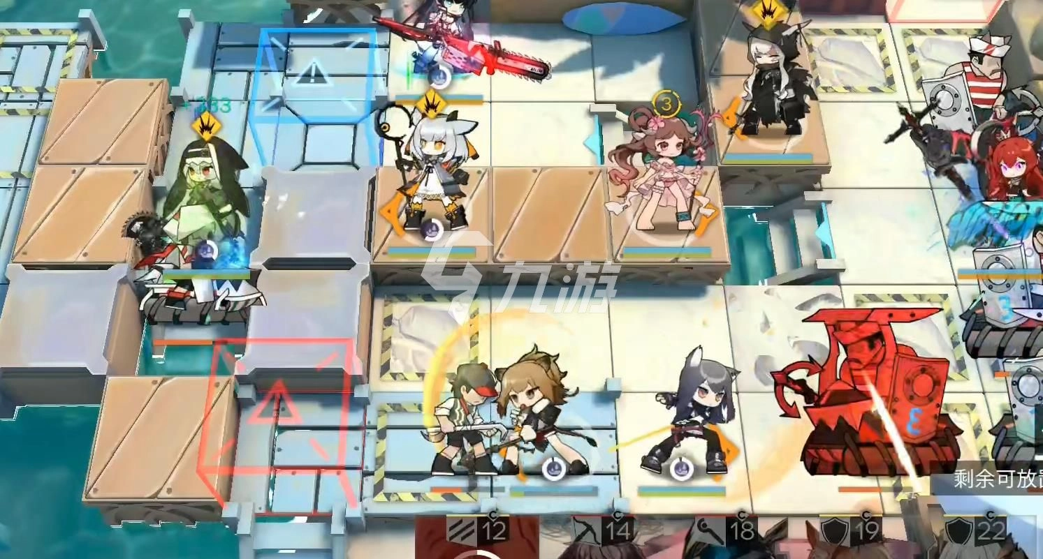紧接着,把克罗斯放在最下方的位置,前方补上群卫。快艇水手这边不用太担心,他们进不了我们的据点,等他们下船后击落就行。涨潮时我们撤退,敌人会被潮水淹死。最后等大盾的冷却时间结束后更换奶盾,之后等待结束就可以了。