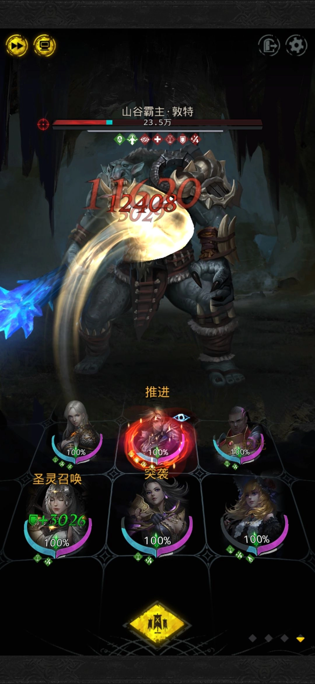 2、在千面魅影扛住狂暴伤害的情况下,复活后排的队伍(晨星)继续输出,这样循环操作很容易就能通关,大家需要注意的是这个过程不要自动进行,否则翻车的几率会很高。