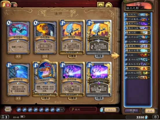 埃兰之影位于卡拉赞副本上层塔的第一关。普通难度下该Boss拥有30点生命值,英雄难度则是30点生命值外加15点护甲。接下来为大家介绍这一关Boss的技能:普通难度时会给每位玩家增加3点法术伤害,英雄难度下这一数值变为5点。其实3点和5点的差距不算大,而且都是提升法术伤害,所以使用一套法师快攻卡组来应对,通关会非常稳妥。下面就来看看这套卡组的具体配置吧!