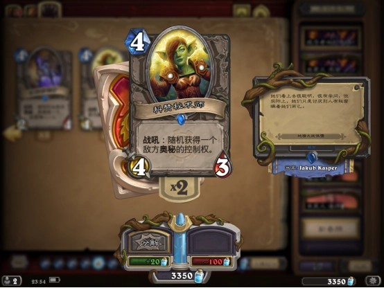 关于奥秘吞噬者和科赞秘术师,它们的作用是针对boss的一个强力奥秘——该奥秘的效果为:当有敌人发起攻击时,对其余所有敌人造成5点伤害(只要不派随从进行攻击,这个奥秘就不会触发)。奥秘吞噬者能直接清除boss的奥秘,同时将其转化为自身的攻击力与生命值;科赞秘术师则可以把boss的奥秘窃取过来为己所用。这两个随从对这关boss有着极强的克制效果,因此我们直接将两张都带满。