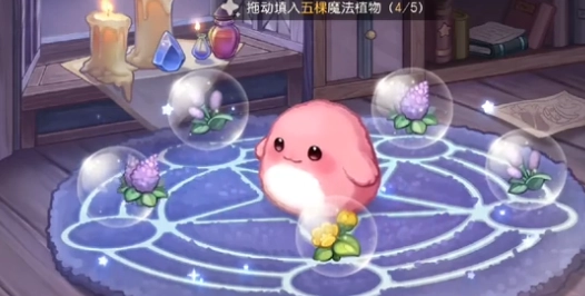 2. 玩家需将5种不同的【普通】魔法植物布置在小精灵周围,这样小精灵就能开启魔法学习之旅。不同植物的排列组合方式不同,小精灵会随机掌握各异的魔法。