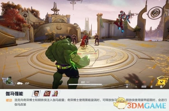 伽玛强能:浩克将伽马能量注入奇异博士与钢铁侠体内,使得他们的技能能够实现伽马强化。