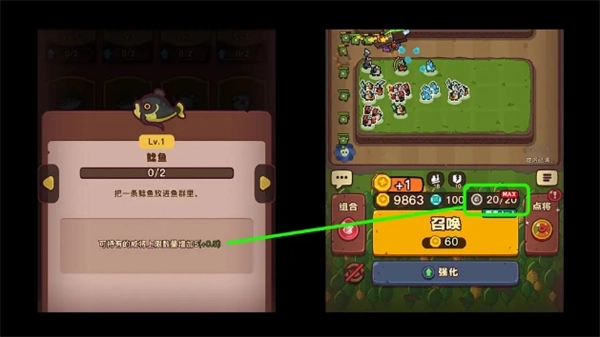 前期战力不够的时候可以快到90只就狂点召唤,不然来不及消灭怪物就会失败