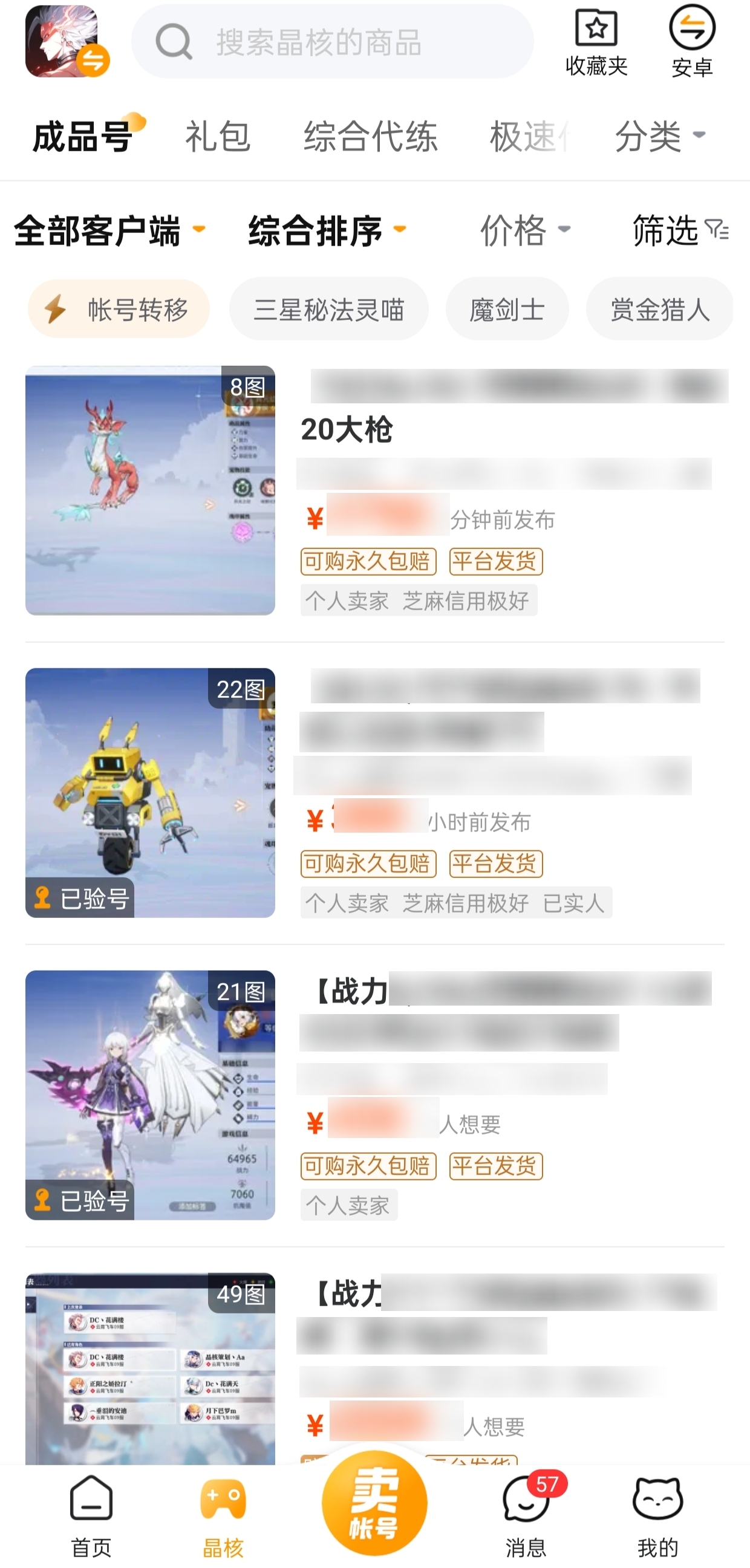 交易猫平台上有丰富的晶核账号资源,不管是适合新手起步的账号,还是资深玩家手中的顶级账号,都可以在这里找到。这些账号包含了不同的职业、等级和装备搭配,能满足各类玩家的需求。此外,平台上的账号信息既详细又真实,买家可以安心挑选。