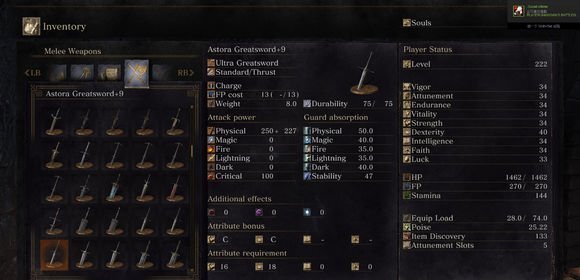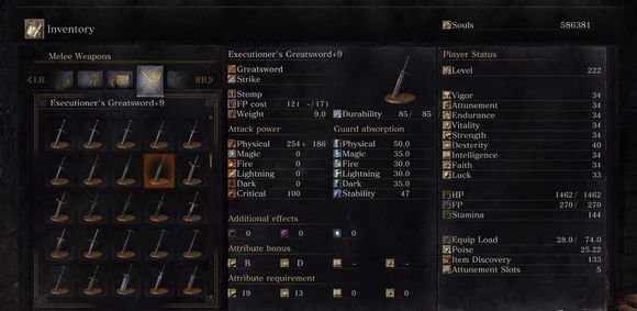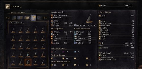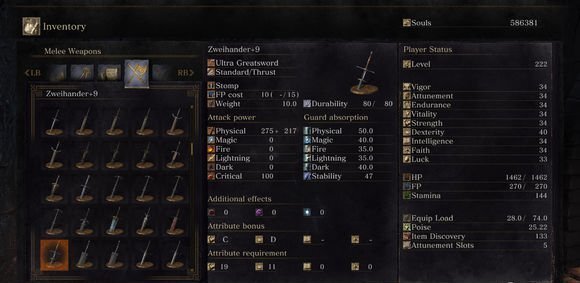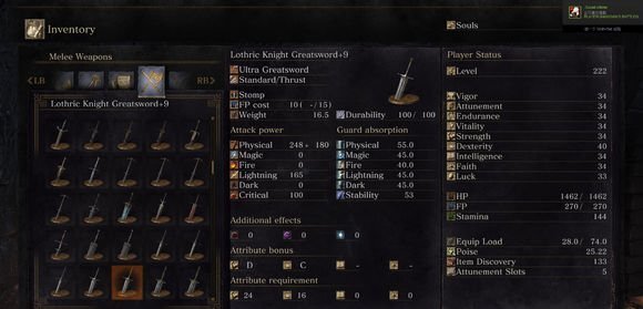 第六位:+9的洛斯里克骑士大剑数值