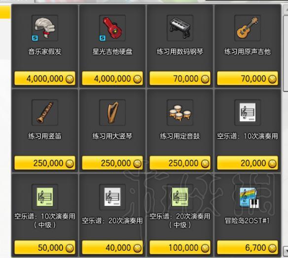 接下来是那些可能既二手又价格不菲的1B类商品,我们需要用到的是价值2W金币的白色谱子和5W金币的绿色谱子——当然,前提是你能把同一首曲子反复播放20遍都不觉得腻。