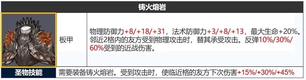 「神器效果」仔细一看,神器增加双防为板甲最低,加强的生命和反弹,就是让血牛去反伤的(所以低防也摆明了让你卖血);
