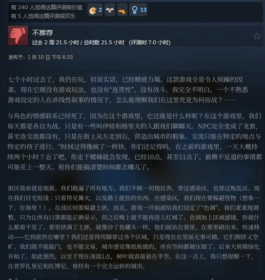 《瘟疫》系列一直是“受苦美学”的典型代表。我们之所以玩这个系列,是因为它能营造出那种让人窒息的生存沉浸感。不过,要是“受苦”变成了单纯的“赶时间”和“枯燥跑图”,那这份苦就吃得毫无意义了。砍掉复杂的交互机制,转而采用更线性的叙事方式,这或许对新玩家比较友好,但对老玩家而言,无疑是一种“背叛”。