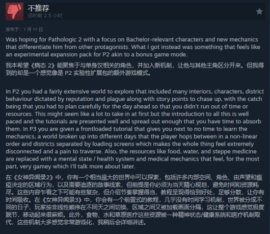 尽管整体口碑尚可,但作为游戏“发源地”的俄语区玩家,却提出了相当尖锐的批评。关键意见十分一致:游戏风格变味了,与其称作3代续作,倒不如说是2代的玩法简化版扩展内容,一位体验了7小时的资深玩家甚至专门写下了长篇差评来表达不满。
