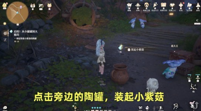 先传送到勇者广场的锚点位置,接着找到那里的光点,点击它就能放出小紫菇们啦。