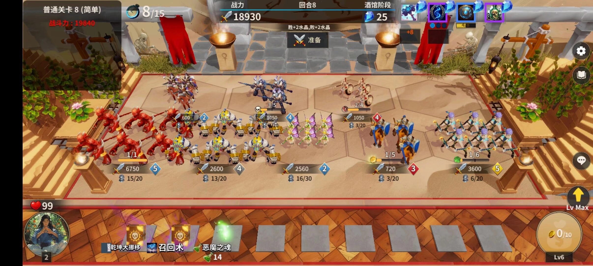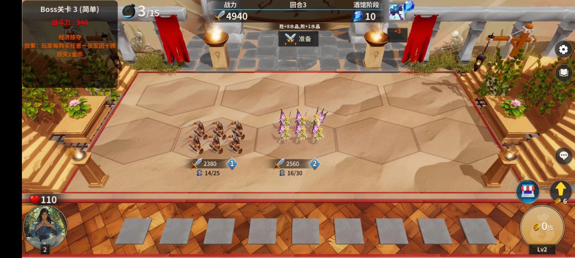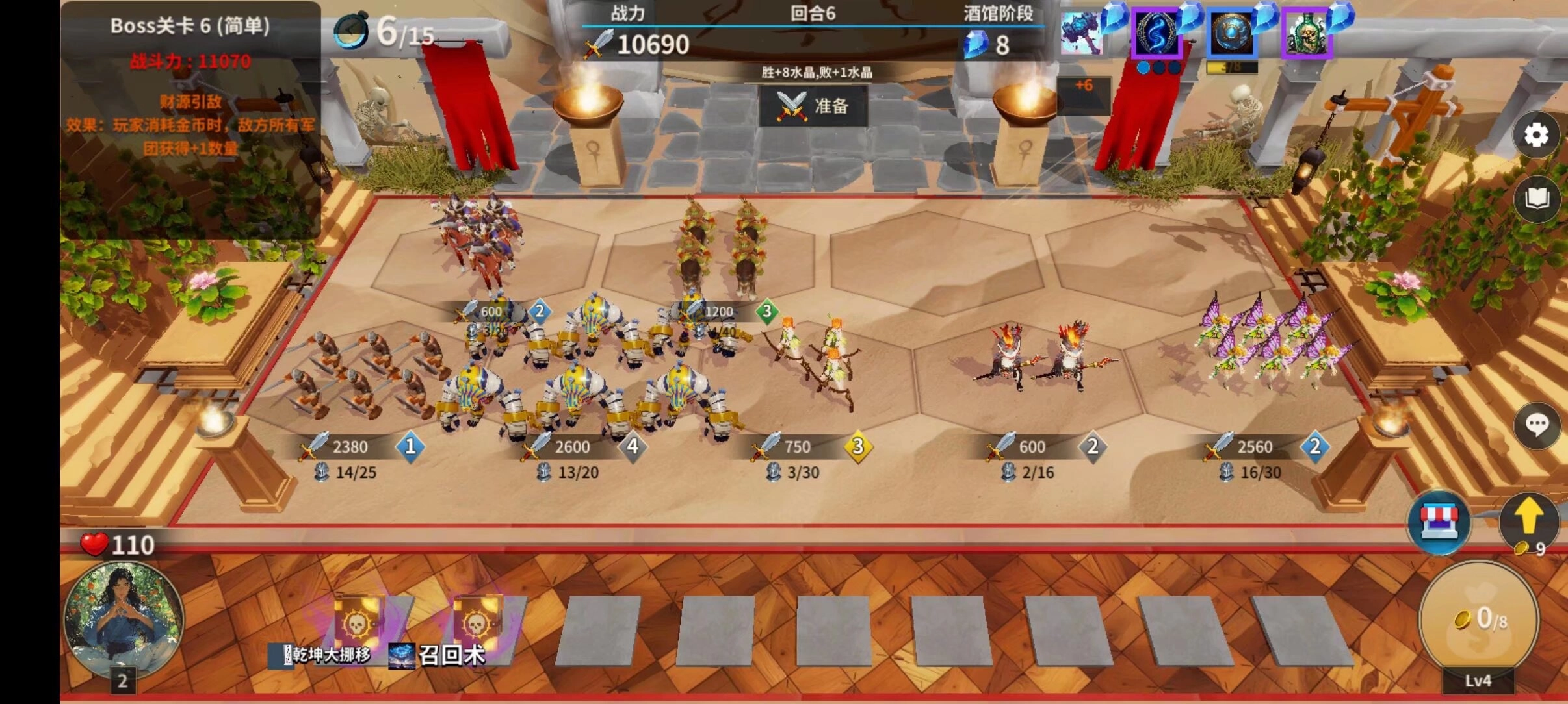 要是第三回合出现小仙女,那就直接买下乾坤小仙女,靠它来打连胜。要是没出现小仙女,想达成连胜的话,也能用乾坤的其他单位,但后续得自己想办法补充灵力。
