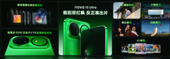 影像上,nova 15 Ultra率先搭载双红枫影像系统,前置首次配备红枫镜头,同时搭配首发的前置像素级光谱感知算法,无论是人物还是景物,色彩都能得到精准还原。