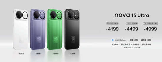 在价格设定上,nova 15 Ultra共推出三个配置版本供消费者选择,其中256GB存储版本的定价为4199元,512GB存储版本的定价为4499元,1TB存储版本的定价则是4999元。