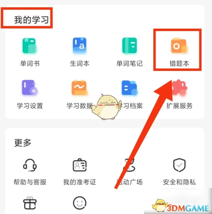 2. 寻找到“我的学习”,接着点击“错题本”。