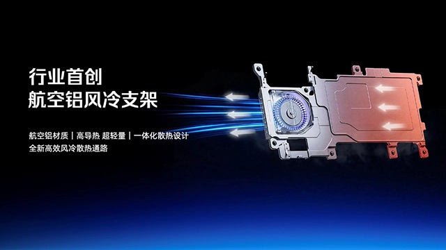 而为了把风扇带入更轻更薄的Air机型,红魔为其定制了航空铝风冷支架,航空铝材质不仅具备高导热性能,而且质量更轻、强度更高。同时散热模组的全新组合,也让导热与散热双效协同,导热系数高达180W/mk,导热系数提升了57%。