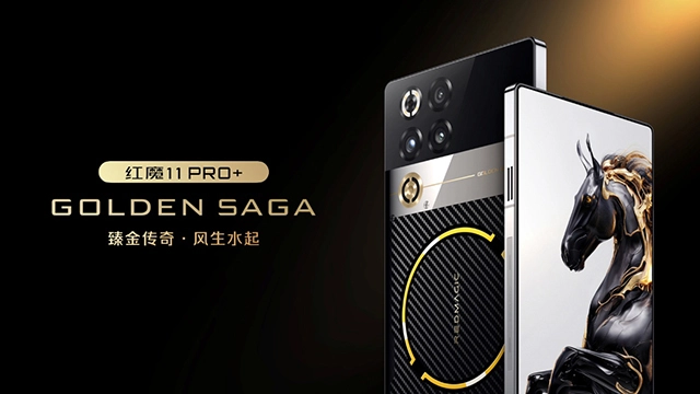 红魔 11 Pro+ 臻金传奇搭载行业独有的24GB+1TB的顶配存储组合,内部配备凯夫拉磁吸保护壳、专属磁吸散热器与臻金卡针、120W魔闪快充等一整套臻金体验,售价为:9899元;