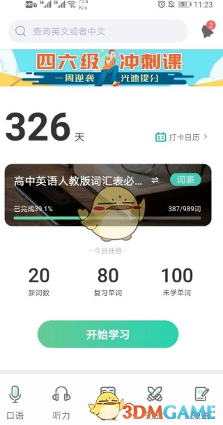 5、在“我的”界面中能够找到生词本。在此处,你还能对自己的生词本进行管理,比如若添加了错误单词,可在此处将其删除。
