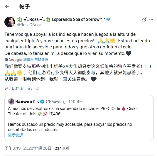 围绕作品的规模与定位,部分玩家在社交平台上讨论它究竟属于3A、2A还是独立游戏。针对这一讨论,参与项目开发的成员Rauwuu_在回复玩家评论时明确指出,《炼魂之地:神偶剧院》的定位更偏向2A级别作品,而非独立游戏。这一表态也为社区长期以来的猜测提供了官方层面的证实。