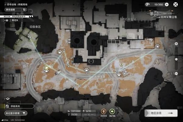野生牙兽仅会在四号谷地的枢纽区和供能高地的谷地出现,而且通常一次会生成3只一群(也就是3块兽肉),下面是我常用的采集点(用兽爪标记)。