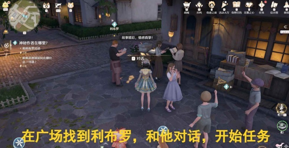 首先我们要传送到“站长宅邸前”的锚点位置,接着点击追踪任务。等抵达广场周边后,任务会自动启动。之后找到NPC利布罗并和他对话,就能知晓那本书叫《留在过去的人》。再按照任务的提示,前往花愿镇,找到NPC芙娜并与她交谈,以此来继续推动剧情发展。