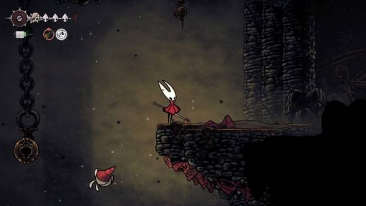 到后面直接冲刺大跳,打开降落伞后稍微调整位置,避开出现的螺丝怪,直接跳到右边的铃铛上,接着下劈,之后就可以打boss了
