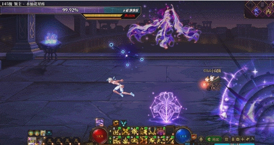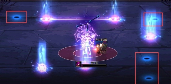 1、二阶段开场触发,boss会跳到一侧释放紫圈,在紫圈外产生爆炸,我们需要用tab进入紫圈。