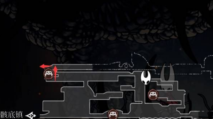 回到地图商人那里后,沿着路径向上走。到达上层后,能看到右边的路被丝线拦住了,暂时走不了。这时候,转去左边,继续往骸底镇上层的苔栖乡走。