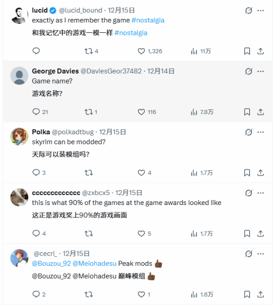 近日,有玩家分享了《上古卷轴5:天际》模组的实机画面,该内容在X平台引发热烈讨论,获得了541.3万次查看,不少玩家都感慨其画风“突破了以往的认知”。