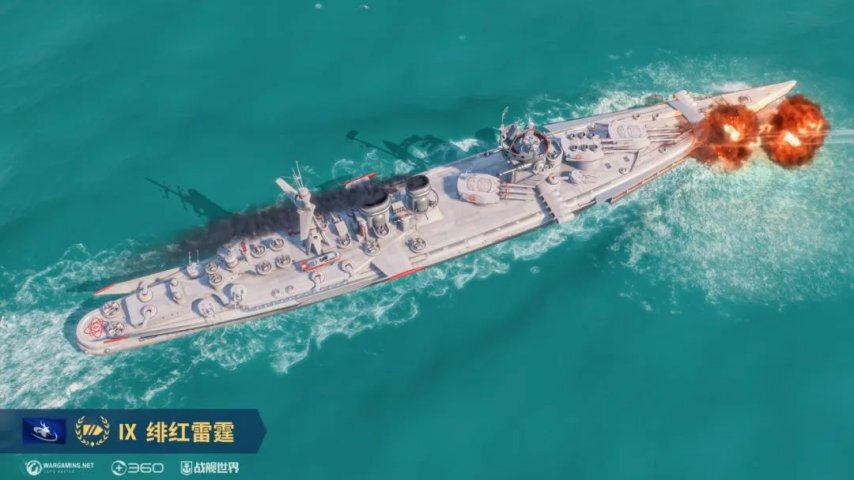 正是因为本体属性均衡且配置合理,绯红雷霆的玩法十分丰富。最基础的思路,是把她当成一艘输出全面强化的狮子,频繁使用高爆弹喷火,特别是面对弱火的战列舰和大巡时,借助高爆弹的绝对优势,持续输出伤害以削减敌方血量,进而拿下胜利。此外,还能利用自身高速灵活的舰体,效仿M系战列舰主动拉侧,攻击敌方侧舷。虽然绯红雷霆的穿甲弹引信仅0.015秒,但较高的穿深依旧能轻松重创大部分敌舰的主装甲带。只需偶尔进行几轮偷袭,就能让敌人难以招架。