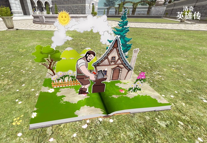 “包装好的奇境立体书”是新版本里首次亮相的物品道具,放置后从远处看就是一本普通的书,只有走近打开,才能看到它真正趣味十足的样子!欢快的音乐响起时,会随机出现三位NPC,他们会跟着节奏舞动,色彩鲜艳的立体书摆在眼前,你只要对着它坐下,好像就能回忆起刚进入库汉村庄时的情景。英雄们不仅能从小英雄的积分商城提前获取这本神奇的书,它还会在14周年活动中免费赠送!