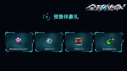 “预售伴手礼”绝对是《全球使命3》里超给力的福利搭档之一!礼包里有暴君武器自选礼包(3天),能让玩家提前感受顶级武器的强悍火力;神器碎片*10加上传承核心*10,能帮大家加快核心装备的升级速度,轻松打破战力的瓶颈;僚机能量堆芯*200还能给玩家提供足够的僚机燃料,保证大家能持续作战不用愁!不管是新手玩家想快速成长,还是老玩家要强化自己的阵容,这份礼包都能给到全方位的支持!更棒的是,所有奖励都会通过邮件立刻发放,不用复杂的操作,一键就能领取,尽情享受这场冰霜盛宴!