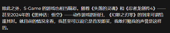 暂且不论这一点,开发商无疑已打造出一款潜力十足的动作巨制。在《失落之魂》《忍者龙剑传4》以及2024年推出的《黑神话:悟空》推动动作游戏热潮回归之际,《影之刃零》显然踩准了最佳的市场节点。从当前的试玩感受来看,我甚至能够肯定地说:这是一款值得在首发时就入手的游戏。