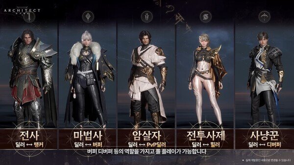 《Architect》由五个职业组成:战士、法师、刺客、猎人和战斗牧师,每个职业代表一个与被遗忘之地相邻的大陆国家。