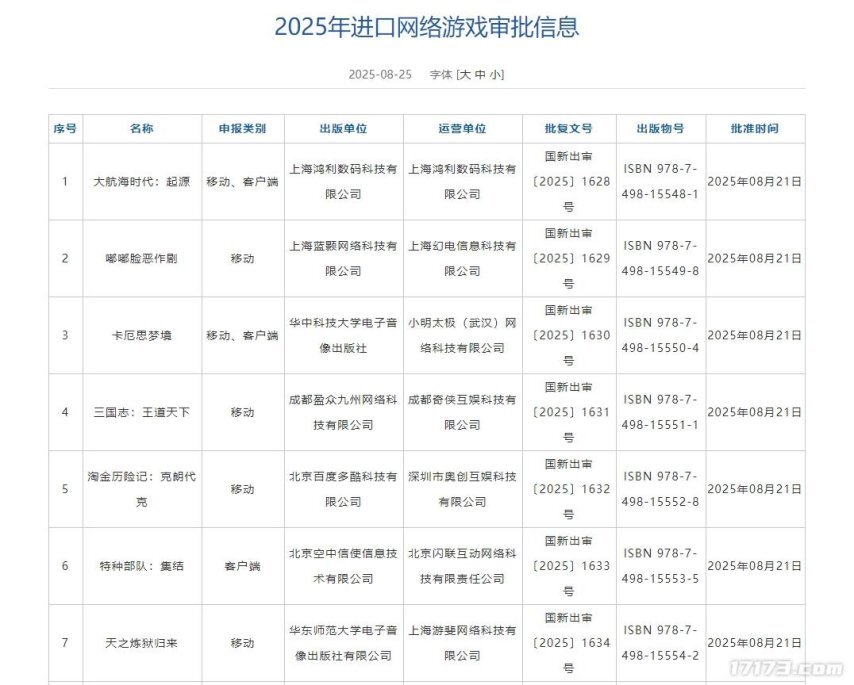 在进口游戏版号审批结果中,B站的《嘟嘟脸恶作剧》、上海鸿利推出的《大航海时代:起源》、小明太极的《卡厄思梦境》等7款进口游戏顺利通过审核。