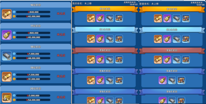 1这个活动的奖励实在太少,多数人都没动力去争取。虽说参与门槛比其他活动低很多,操作上完全不复杂,但奖励内容确实没什么吸引力——哪怕是个人排名第一,也才17张设计图纸和330个抛光液;就算把联盟排名第一的奖励、防守积分的保底奖励都算上,也不过额外多18个抛光液、6个设计图纸和一个领主装备材料宝箱,而且这还是把保底吃满、个人和联盟都拿第一的极限情况。对比其他活动的奖励,这个实在太普通了,比如燃霜矿区的低保奖励就很诱人,让人忍不住想拿。