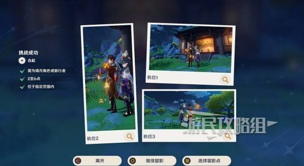 切换一名风元素角色上场,和留影点进行互动,按照自己的喜好调整设置,之后就能在界面左侧查看是否满足留影的条件。