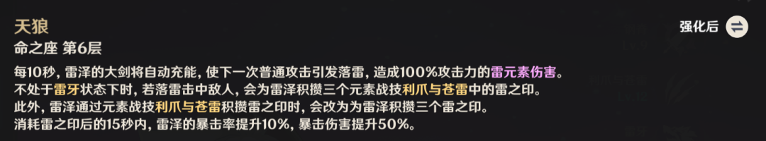 元素爆发获得强化,雷之印溢出可以引下落雷攻击。