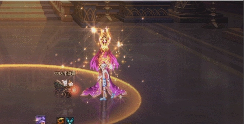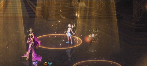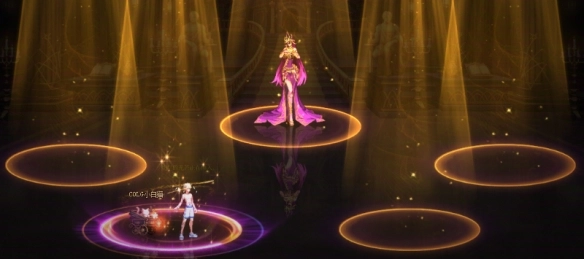 1、进入战斗后,boss会召唤4个聚光灯,我们需要进入带有紫色扩散特效的聚光灯。