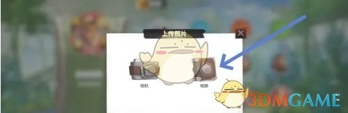 2、于更换头像页面,轻点相机图标,接着点击右下角的相册选项。