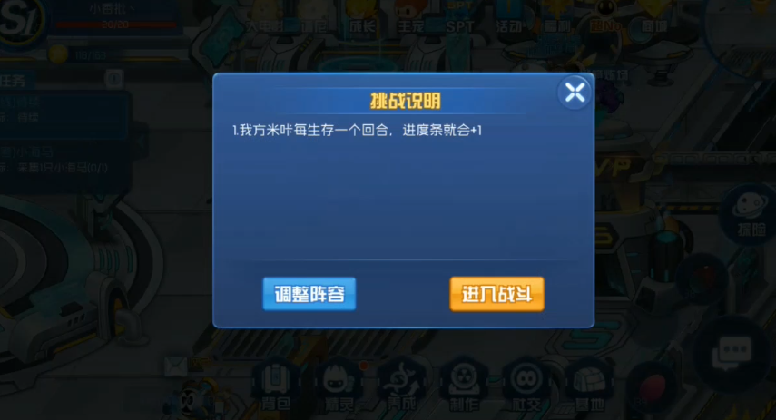 1、我方米咔每存活一个回合,进度条就会加1。所以大家的目标就是尽量生存下去,能多拖一个回合是一个回合。