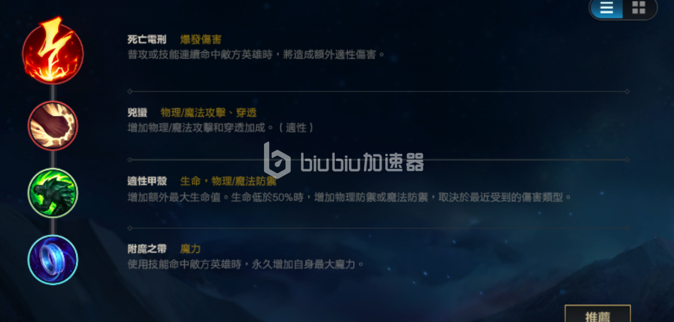 当然,要想把辅助光辉玩好,除了前面提到的那些硬核操作技巧外,有一个稳定的加速器同样是很有必要的。这里给大家推荐biubiu加速器,大家只需要下载安装好,然后打开进入,选择英雄联盟手游对应的加速选项就可以使用啦。
