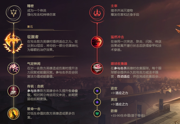 关于符文选择,有两套思路可供参考:电刑或征服者。不过对于新手玩家来说,征服者会是更友好的选择。主系符文推荐征服者、气定神闲、血统和致命一击,其中血统的作用是强化稻草人的吸血效果。副系符文则建议搭配主宰系的猛然冲击与眼球收集者,这两个符文组合堪称稻草人的最佳搭档。