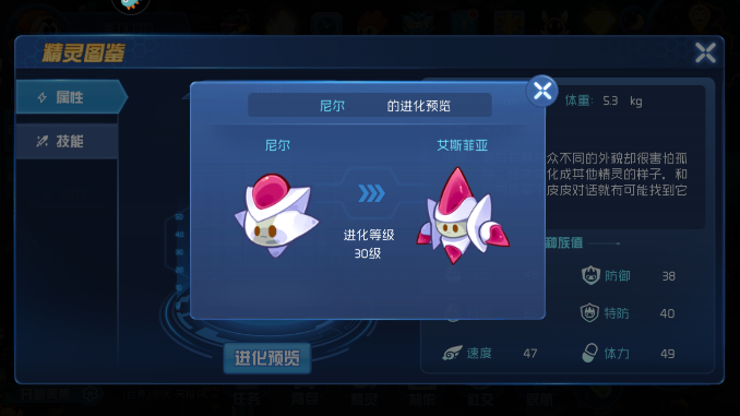 (1)尼尔:它的进化形态为艾斯菲亚,是游戏早期推出的超能力系精灵之一,种族值达到522,玩家能够通过任务免费获取这只精灵。