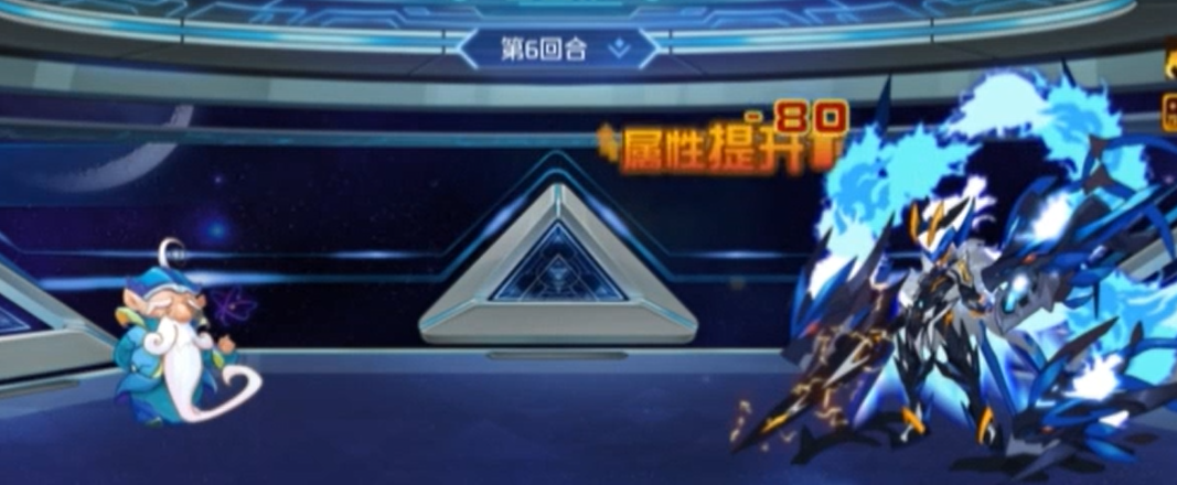 最后一关的战斗打得异常胶着,超维暴龙对上幻境界神时,只能赌运气扛住秒杀攻击,接着用超时空盾墙全力输出,把对方大半体力打掉。之后幻影蝶靠无影攻击持续消耗时空界神,再选择自爆退场。最后换空灵之刃收尾,先强化一次,再放两次150伤害的技能,第三回合就终结了六界御神。